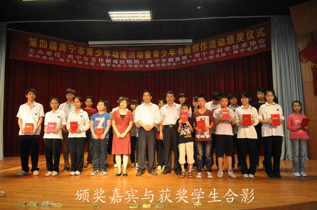 继2007年以来,为深入加强青少年思想道德教育建设,南宁市已经成功举办了三届青少年动漫系列活动,本届活动的开展同样受到了动漫各界包括专业制作机构及业余创作者的高度关注和积极参与。此次颁奖活动的奖项分为一、二、三等奖、优秀奖和组织奖以及优秀指导老师等6大类,获奖作品充分展现了绿城文化内涵基础之上的动漫书画艺术活力,让我们看到了目前绿城动漫书画原创力量的巨大潜力和广阔的拓展空间。