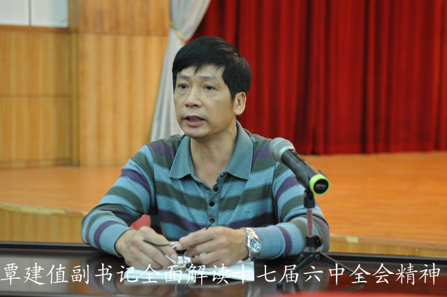 覃建值副书记接着就十七届六中全会的基本情况及《中共中央关于深化文化体制改革、推动社会主义文化大发展大繁荣若干重大问题的决定》的基本构架、主要精神和精彩观点等不同方面,对十七届六中全会进行了深入解读。围绕文化体制改革这一主题,从我国社会主义文化体制改革和发展需要把握的几个方面、要解决的问题、改革的重要任务等方面,阐释了推动社会主义文化大发展大繁荣是我国经济社会发展进入新阶段的客观要求,是提高国家文化软实力的战略举措,是满足人民日益增长的精神文化需求的迫切需要,我们要充分认识文化体制改革的重要性和紧迫性,把握好“四个更加”、“四个越来越”和“三个关系”的内涵,自觉提升个人理论认识和道德修养。同时,图书馆支部还要进一步加强党的队伍建设和人才培养,为构建“国家一流、民族特色、五十年不落后”的现代化南宁贡献力量。
