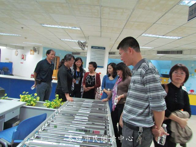 随后,在李霞副馆长的热情带领下,梁馆长一行先后参观走访了电子阅览室、残疾人阅览室、社科借阅室、文学借阅室、多功能厅、市民阅读中心和装订室等窗口和部门,充分了解了我馆在服务内容、信息管理和资源建设等方面的具体情况,同时就设备设施、免费开放等问题进行了深入的探讨。