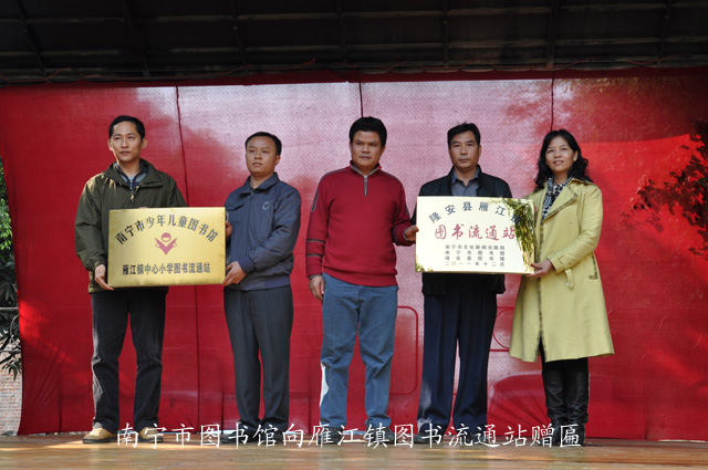 此次“文化三下乡”活动形式新颖、内容丰富,不仅为雁江镇居民送去精彩的文艺娱乐演出,还送去了丰厚的精神文化食粮。南宁市图书馆为雁江镇文化站精心挑选了三百多册馆藏图书,并授予该文化站“雁江镇图书流通站”的牌匾,为雁江镇居民学习科技文化知识、发展经济致富、休闲娱乐阅读提供了更多的图书资源。