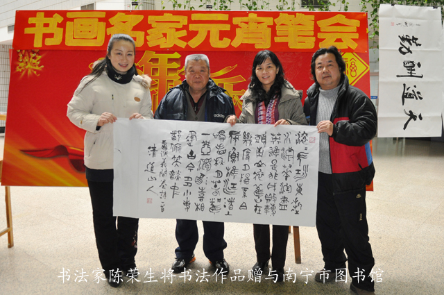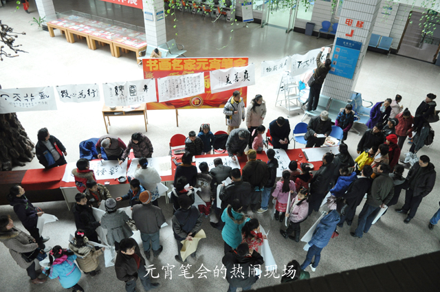为迎接传统佳节元宵节的到来,充分展示绿城书画艺术的独特魅力,2月5日上午,南宁市图书馆举办了在邕书画名家元宵笔会。此次笔会特邀陈荣生、卢秀凤、李汉民、陈献邦、辛庆彬和王定广等具有相当艺术造诣的书法家和画家莅临现场交流技艺,并为广大读者即兴创作,送上了美好的节日祝愿,还同步举行了元宵书画作品展。
