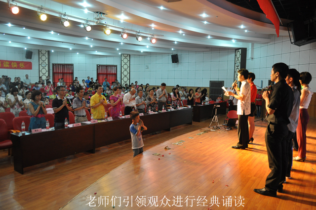 南宁市图书馆副馆长李霞、金慧书院荣誉院长萧枫、上海弥光文化传播有限公司项目总监余鑫君及深耕育苗公益行动的赞助商——香港京都念慈庵总厂有限公司总经理郑本家等嘉宾出席了活动并致辞。受益的儿童代表展示了学习的成果,《弟子规》、《三字经》和《德道经》等经典篇章经过孩子们的精彩演绎,形成了一个个声情并茂、载歌载舞的节目。最令观众印象深刻的是诗朗诵《乡愁》,稚嫩的童声表达着游子对母亲的眷恋,深沉的吟诵吐露着浓郁的乡思之情,几位朗诵演员用肢体语言演绎着诗中的场景,情真意切、感人至深,赢得了现场的阵阵掌声。不仅场上的少儿尽情展示着风采,台下的孩子们也按捺不住背诵起《大学》、《论语》等国学篇章,整齐、悠扬的诵读声在现场绕梁不息。孩子们对中国传统文化的喜爱和学习的热忱令在场的老师和家长深切地感受到了参加经典文化深耕育苗公益行动的价值和意义。