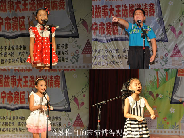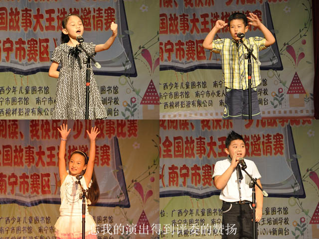 本次比赛是南宁市图书馆“七彩童年”系列活动的重要内容之一,历时三周,分为幼儿组(学龄前儿童)、儿童组(小学一、二年级学生)、少儿组(小学三、四年级小学生)和少年组(小学五、六年级学生)进行。其中,5月27日、6月3日分别在南宁市图书馆举行儿童组、少儿组和少年组的初赛。本次比赛将为第十二届全国故事大王选拔邀请赛选送优秀选手和节目。5月27日当天共有100多位少年儿童参加了故事比赛。南宁市德艺双馨艺术家李凯、广西艺术学校播音主持专业老师王焕国、汉语言文学研究生、南宁市图书馆办公室杨粒彬老师担任了当天比赛的评委。小选手们年纪虽小,但在比赛现场均落落大方,讲起故事来绘声绘色,有的动作夸张、有的表情丰富,还有的将动物、人物模仿得惟妙惟肖,引得台下观众掌声连连,评委频频赞叹。选手们参赛的节目各具特色,亮点十足,充分展示了故事的魅力与个性的风采。