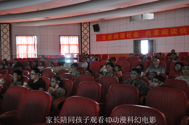 6月1日起连续两天,南宁市图书馆多功能厅播放的4D动漫科幻电影吸引了众多青少年及家长前来观影。《海龟之旅》、《烈战恐龙》、《灾难启示录》、《鼠老三进城2》、《里约大冒险》、《冰河世纪 3》、《功夫熊猫2》、《变形金刚3》、《三个火枪手》、《阿凡达》等经典4D影片让青少年在奇幻的世界里尽情畅游,享受到了高科技带来的刺激、新鲜的感官体验。