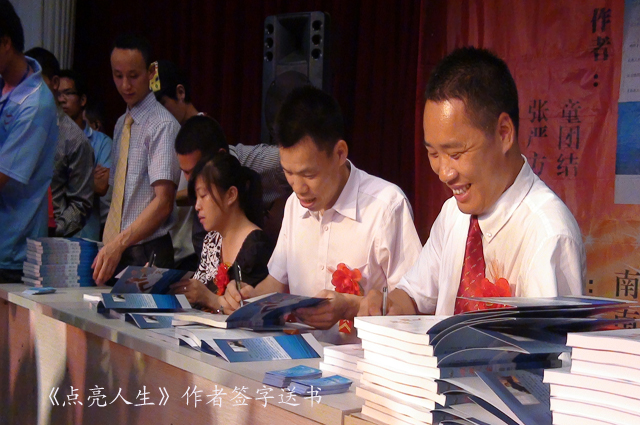 《点亮人生》新书发布会于2012年6月10日上午,在南宁市图书馆二楼多功能厅隆重举行。此次活动由南宁市图书馆、桂林文学院主办,南宁点亮文化传播有限公司、南宁南国之光残疾人艺术团承办,南宁名榜文化传播有限公司、广西龙歌文化传播有限公司协办。此次新书发布会吸引了400多名热心观众前来参加,现场座无虚席,观众反响热烈,活动还得到各界媒体的积极响应。