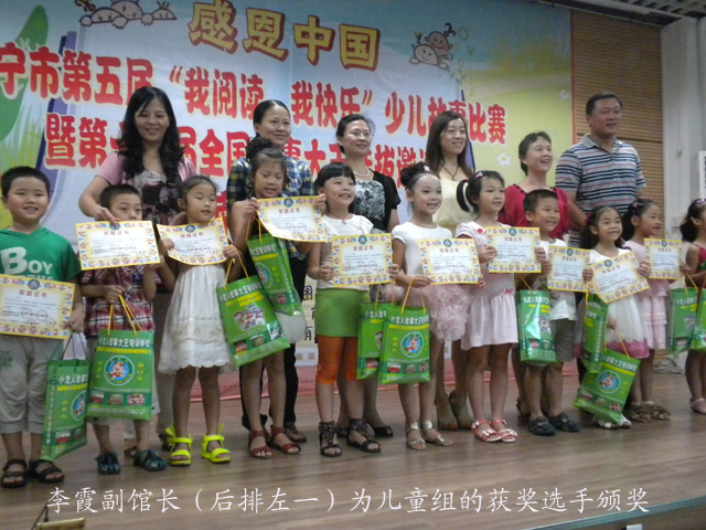 此次比赛,分别在广西壮族自治区图书馆、南宁市图书馆、南宁市少年儿童图书馆分场举行。大赛共吸引了来自南宁市所辖的六县、六城区的58所小学和36所幼儿园的669名小选手踊跃参加。5月19日至6月10日间,选手们分为幼儿、儿童、少儿、少年四个组进行了12场初赛。小选手中,年龄最小的5岁,年龄最大的12岁,有壮、汉、瑶、苗、侗、回、满、京、土家、仫佬、仡佬、毛南、水等民族。经过激烈地角逐,共有74名小选手脱颖而出进入决赛,并于 6月10日在决赛中一决高低。决赛中的最佳选手将赴四川成都参加第十二届全国少年儿童故事大王选拔赛。当天,南宁市图书馆李霞副馆长应邀出席颁奖典礼并为获奖选手颁发了荣誉证书。
