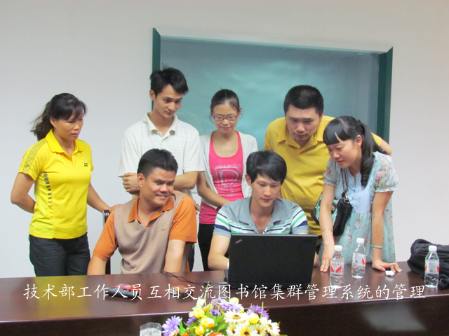 南宁市图书馆此行由贺南潮馆长带队,携技术部相关人员并邀请了来自广州图创计算机软件开发有限公司的专家,为邕宁区图书馆、隆安县图书馆的工作人员现场讲解了图书馆集群管理系统的使用、维护及管理等内容,并围绕联合图书馆自动化系统建设、图书馆集群管理系统的前期协调、后期管理展开了交流与研讨。联合图书馆自动化平台搭建后,不仅将有效提升各县、区图书馆的技术力量,而且将极大改善目前县区馆与市区馆之间资源建设缺乏统一规划、信息建设离散无序、读者服务分割严重、薄弱等问题,从而推动公共图书馆现代化、数字化建设新发展。