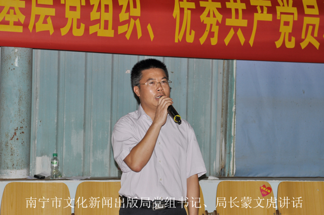 仪式后,南宁市文化新闻出版局党支部书记、局长蒙文虎发表讲话,希望受表彰的先进集体和先进个人把荣誉转变为提升工作的动力,在市委、市政府的坚强领导下,积极落实各项方针政策,在推动南宁市文化新闻出版事业的工作中再创佳绩,再立新功。党员们纷纷表示,将不辜负党员这个光荣称号,争做一名合格党员,争创先锋,以实际行动为党旗增添光彩。