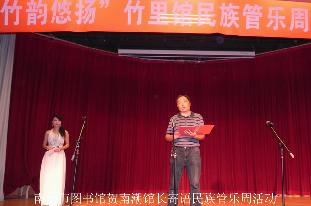 南宁市图书馆贺南潮馆长在竹乐•竹韵悠扬音乐会上寄语民族管乐周活动,他说:广大读者喜欢同时也需要像民族管乐周这样的活动,作为公共图书馆,举办这样大型的、系统的、自发的音乐会展演活动,在广西乃至在全国都尚属首次,这样的活动对于们绿城南宁的文化发展无不起到了积极作用;他希望,南宁市图书馆能够长此以往地举办这样具有影响力的、惠及广大市民的文化活动,同样也欢迎社会各界携手合作,以公共图书馆作为传播文化的平台,举办各种主题的文化活动,以此进一步提升绿城文化的欣赏及演艺水准,为首府的整体文化又快又好地发展贡献力量!