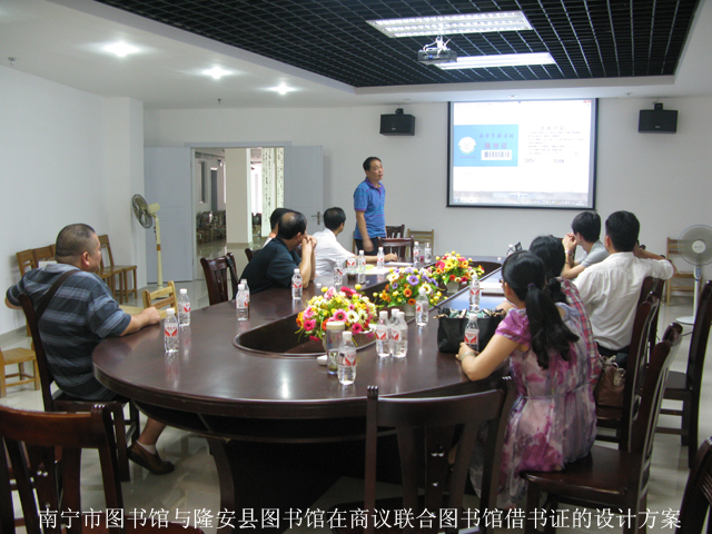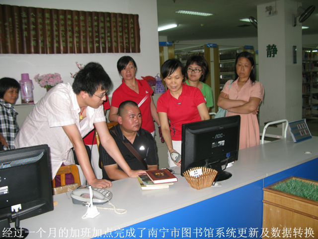 为了早日实现这一目标,南宁市图书馆在南宁市文化新闻出版局的指导下做了大量工作,制定联合图书馆的总体规划和实施方案、确定联合图书馆的技术标准、数据标准,制定数据转换与传输规则、文献资源保障体系建设方案,以及联合图书馆统一的业务管理规范与服务准则等;搭建统一的技术平台即Interlib图书馆集群管理系统,邀请广州图创计算机软件开发有限公司的专家张宇霆举办“南宁市城乡一体化联合图书馆自动化服务馆长培训班”、“南宁市公共图书馆集群自动化管理系统培训班”,对南宁市图书馆全体人员及各县区图书馆的馆长、技术人员进行培训,并分批抽调南宁市图书馆的工作人员与专家一同赴各城区、各县级图书馆指导图书馆集群管理系统的安装调试、讲解示范系统的使用、维护及管理,按照联合图书馆书目数据建库的要求,建成或完善该馆的书目数据库;请专家设计联合图书馆的LOGO,统一标识,形成品牌效应……经过一个月的加班加点,南宁市图书馆、西乡塘区图书馆完成了系统的更新及数据转换,而邕宁区图书馆、隆安县图书馆则实现了图书馆管理从手工向计算机管理的转变,其他图书馆也正陆续更新系统。