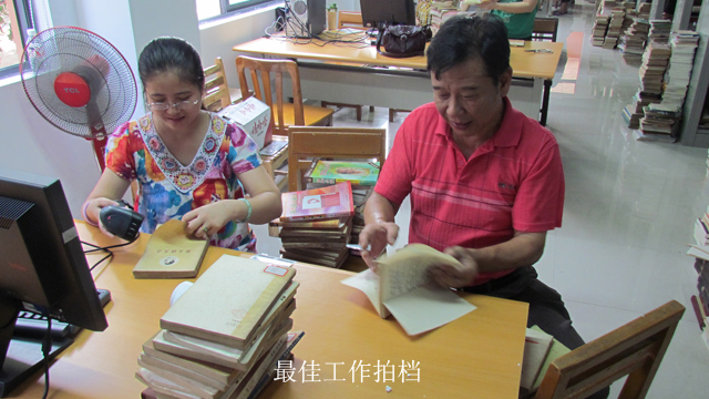 此行主要是解决的是该馆文献条码的问题。由于隆安县图书馆在启用图创Interlib图书馆集群管理系统初期采用的文献条码号长度仅有5位数,与南宁市城乡一体化联合图书馆参数制定的规则不相符,本着城乡一体化联合图书馆“统一标识、统一平台、统一资源、分级建设、分级管理、分散服务”的原则,必须把5位数的条码长度修改为联合图书馆操作规范下的文献条码总长度14位。为解决好这个问题,我馆技术部的同志积极与来自广州图创的工程师积极探讨解决问题的最佳方案,并在完成了系统上的技术处理后,工作小组的所有同志与隆安馆的同行们一起完成新旧条码的替换工作。该工作虽然简单,但单调琐碎,需要耐心和细心地投入。馆领导以身作则,大家充分发挥了图书馆人吃苦耐劳的精神,2-3人组成一个小组,开展了你追我赶的劳动竞赛,特别是我部张霜红和流通部的邵高宁这对最佳搭档,以默契的协调和快速的工作效率,置换条码的数量走在6个小组之前,其他小组成员也不示弱,一天时间内完成四分之一的工作量。