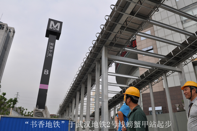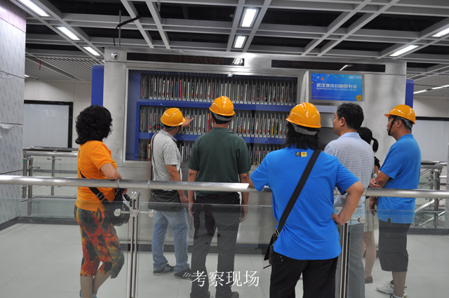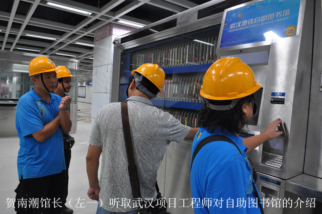 25日下午,南宁市图书馆考察组一行在“书香地铁”项目工程师的引导下,来到位于武汉市地铁2号线螃蟹甲站参观这里两个月前刚刚通过验收的武汉地铁24小时自助图书馆。
