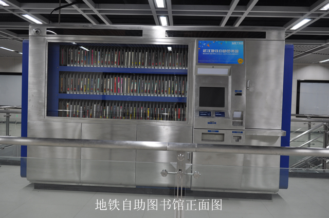 据介绍,该自助图书馆主要采用先进的射频识别技术(RFID),通过射频信号自动识别粘贴在每本图书上RFID电子标签进行信息管理。借阅区里展示的书籍采用智能环形轨道技术实现图书的自动化上下架;如果机器里没有存放读者需要的图书,则登陆系统进行预约,由市图书馆配送上架后,通知读者前来自助取书。该图书馆的借书证将采用“武汉通”卡,该卡兼具借书、充值及乘车几种功能。读者只需点击“办证”字样,在自助借还机的提示下扫描身份证、存入押金100元,就能得到一张“武汉通”。通过电子显示屏的提示,可及时修改卡密码;通过该电子显示器的查询系统,可查询读者喜爱的图书;需要借书,则点击“借书”字样,扫描“武汉通”,输入卡密码和书籍序列号,所借的书就会从出书口吐出来;还书时,只需点击“还书”字样,扫描“武汉通”,输入密码,把书放进还书卡口即可。无论办证还是借还,整个过程不到1分钟,方便快捷,并且借书还书都可打印小纸条作为凭证。借书时间在半月左右,借阅期间免费,超时则需支付滞纳金,估计每本每天二角三角钱。除了地铁乘客,附近的居民和上班族均可在此借书、还书。地铁图书馆建设初期,书籍主要在地铁范围内流通,以后逐步实现地铁图书馆与地上图书馆的通借通还。