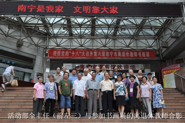 为迎接党的十八大胜利召开,庆祝2012年教师节和即将到来的中华人民共和国六十三周年诞辰,9月8日,南宁市图书馆与南宁市老科协老教师分会、南宁市老教师书画协会共同举办了第六届南宁市离退休教师书画展。南宁育人假日培训学校对书画展给予了大力协作。