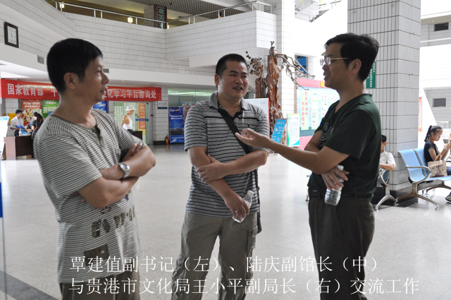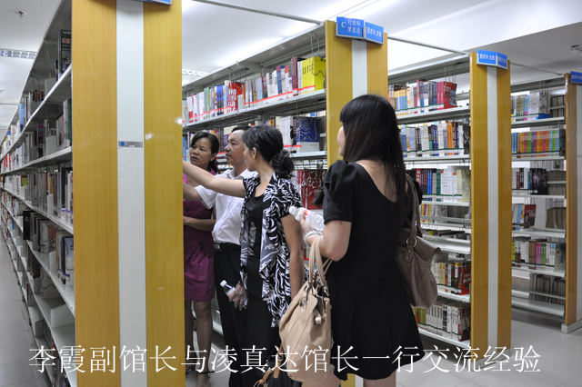 2012年9月8日,贵港市图书馆一行9人在贵港市文化局王小平副局长和贵港市图书馆凌真达馆长的带领下,前来我馆考察图书馆建设。