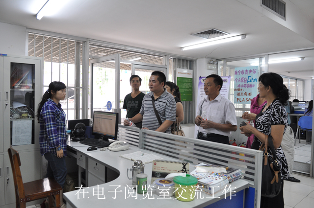 贵港市图书馆1万多平方米的新馆将于今年12月对外开放。因此,贵港市图书馆同仁专程来考察了图书馆内部功能布局、环境布置及开放时间等方面。南宁市图书馆覃建值副书记、李霞副馆长、陆庆副馆长热情接待,并就新馆搬馆过程中可能遇到的问题及需要注意的事项与贵港市图书馆同仁进行了深入的探讨与交流。
