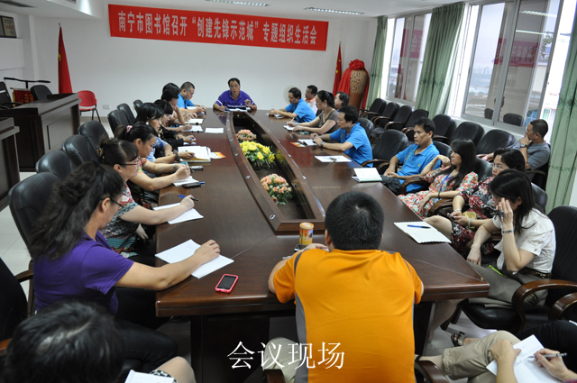 2012年9月19日上午,南宁市图书馆组织全体中层干部在六楼会议室召开“创建先锋示范城,加快实现首府现代化建设新跨越”专题组织生活会。会议由图书馆党支部书记、馆长贺南潮主持。