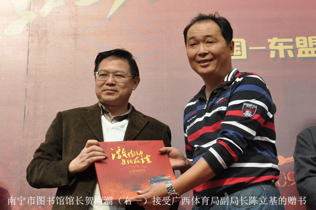 广西体育局副局长陈立基在开幕式上致辞,他希望能通过这次摄影展,增加观众对东盟国家的了解,更真切的体会到拉力赛独特的魅力,促进社会各界对拉力赛的支持,为拉力赛未来的发展奠定更坚实的基础。随后,他将《激情拉力 集结友谊》一书赠送给南宁市图书馆收藏。