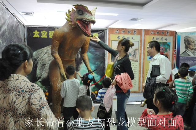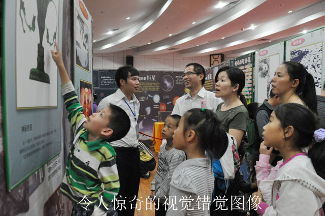 此次展览涉及的科学领域极其广泛,有天文、地理、自然、生物以及超自然现象等。展览形式也很丰富,孩子们不仅可以与恐龙模型互动、观看3D电影,还可以玩益智游戏、体验“触电”的感觉。现场展出的视觉错觉图片受到小朋友与家长的极大欢迎,纷纷积极参与互动,同时工作人员在一旁对这些现象进行讲解,为孩子们的科学之旅导航。