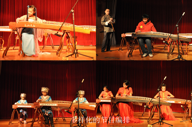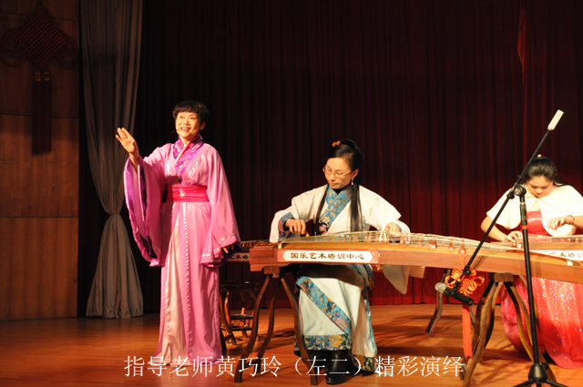 古筝,这个中华民族独特的传统弹拨乐器以其音色优美,音域宽广、演奏技巧丰富、极具表现力而深受广大人民群众的喜爱。如今,在南宁学习古筝的爱好者也越来越多。音乐会当晚就以古筝为主打乐器,兼有笛子、箫、古琴等民族乐器演奏,吸引了三百多位古筝的爱好者前来聆听。演出的形式不仅穿插有独奏、齐奏,还编排了古筝弹唱、筝箫合奏等,演出曲目除了颇具民族风情的《雪山春晓》、《寒鸦戏水》、《春到拉萨》等,还有《高山流水》、《良宵引》、《临安遗恨》等古典古筝名曲,而《荷塘月色》、《沧海一声笑》等耳熟能详的通俗歌曲用古筝来演绎更是别具新意,拉近了与听众的距离。本场音乐会有两大亮点,一是古筝弹唱《游子吟》,小女孩韦彦辰以她娴熟的古筝弹奏配合自己清亮稚嫩的嗓音,如清风拂面、心旷神怡;二是由指导老师黄巧玲等压轴的古筝弹唱《春江花月夜》,乐曲通过优美质朴的抒情旋律,流畅而富于变化的节奏,丰富多彩的各种演奏技法,有如一幅动人的山水画卷,贴切地描绘出月夜江上游船筲鼓齐鸣的动人情景,令听众如痴如醉。