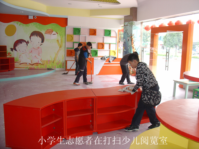 3月10日,南宁市天桃实验学校六(4)中队的19位同学来到南宁市图书馆进行学雷锋做好事活动。在即将开放的“启智书苑——少儿阅览室”,同学们认真细致地打扫、擦窗、整理图书,为青少年读者留下了一个窗明几净的良好借书环境。