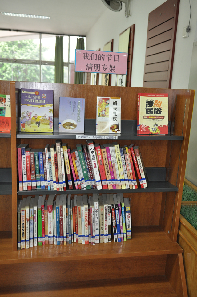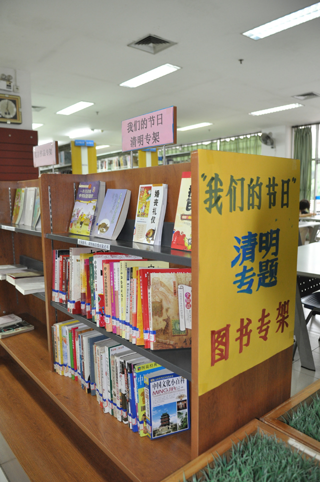 为配合南宁市精神文明办《关于开展2013年“我们的节日•清明节”主题活动的通知》,南宁市图书馆自4月2日起在文学厅推出《我们的节日•清明专题》图书专架,向读者推荐《我们的节日》、《青少年应该知道的中国民间传统节日》、《吴越丧葬文化》《中华文化常识全知道》等一批图书,欢迎广大读者前往借阅。