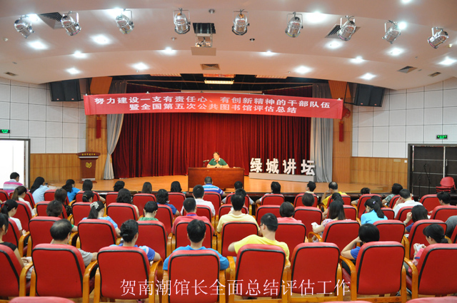 随后,贺南潮馆长还就本馆的评估工作进行了全面总结。今年开年以来,我馆始终高度重视全国第五次公共图书馆评估工作,把评估工作当做上半年重点工作来抓,专门成立评估工作领导小组,认真组织职工研读评估标准和细则,统一思想、提高认识,精心准备。通过评估小组成员严谨有序地工作,并在完成全市12个县、城区公共图书馆的评估的基础上,顺利完成了本馆的迎评任务。会上,贺馆长向大会通报了本馆在本次评估中的得分、主要扣分点等情况,深刻总结了此次评估的经验、教训和不足,敦促全体同志认清存在的问题,找准工作思路,改进工作方式,从而实现“以评促进”的根本目标。