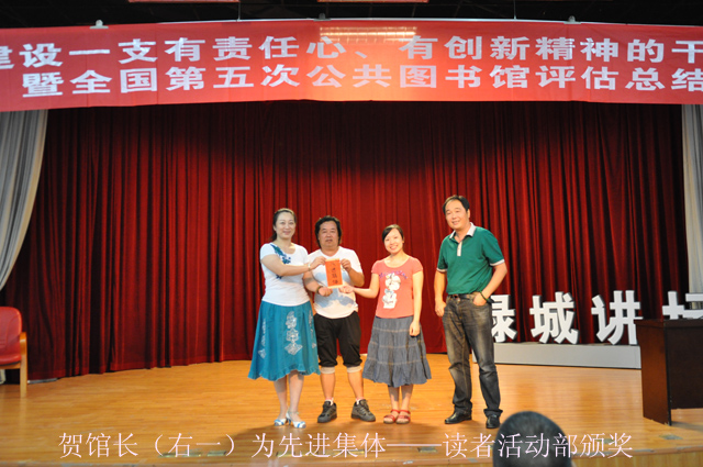 最后,会议还对本次评估中表现突出的集体和个人进行了表彰。我馆读者活动部以及副馆长李霞等6位同志获得了“馆长奖励基金”的嘉奖。