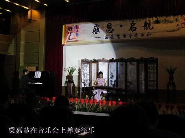 音乐会上,《春到湘江》和《漓江春色》等筝曲跌宕起伏——时而柔美,时而铿锵,随着梁嘉慧律动的十指,聆听者们随之进入到一个高山流水一般的境界,广西老年书法协会的何老先生还现场挥毫一幅行书大字——雏鹰展翅,喻意梁嘉慧锲而不舍地刻苦学习古筝,将来一定能够变成“老鹰”而有所作为;最后一首压轴曲目《临安遗恨》更凸显了梁嘉慧的弹奏功底,引起场上掌声热烈响起。梁嘉慧表示,能举办这样一场迎中秋的个人音乐会很有意义,而最要感谢的就是自己的父母和一直悉心指导自己的黄巧玲老师,这场音乐会是尊重传统和发扬传统的感恩心声。