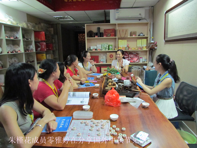 南宁市图书馆朱槿花女子读书沙龙也在近日以“团圆和睦、安定祥和”为主题,开展了“我们的节日•中秋”座谈会。成员们带上了不同馅料的月饼相聚于青秀山上的如意坊中,在谈到关于中秋节的诗句时,成员们有的赶紧上网查找,有的直接就背诵出了李白的《静夜思》和《关山月》等,之后大家集中建议,选定了张九龄的《望月怀远》——海上生明月,天涯共此时……欢声笑语无不为即将迎来的中秋佳节增添了和谐温暖的氛围。刚刚旅欧归来的成员零雅婷还将自己在国外唐人街看到的见闻分享给大家,她说,同胞们准备过中秋节的气氛非常浓,他们在店铺门前挂灯笼、张彩旗,布置一新,等候节日的到来,华人的庆祝活动永远都少不了舞龙舞狮;成员梁知从报纸上找出节日出游的“秘籍”读给大家,她介绍,在南宁刚刚开放迎客的园博园是个节假日的好去处。在“先尝为快”话佳节的时刻,成员杨晶晶还拿出了她的绝活“茶道秀”来,大家在一边品茶品月饼的“预热”活动中,一边畅谈中秋节的典故。