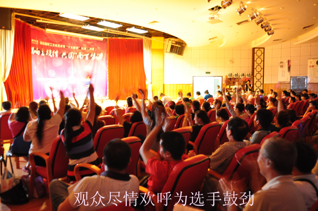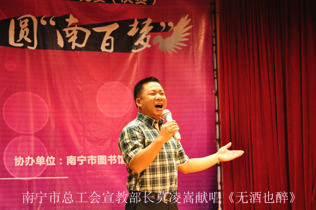 为迎接国庆节的到来,体现企业文化建设的可喜变化,丰富广大市民的业余文化生活内容,展现企业人的新形象, 9月24日下午,企业文化艺术节“十大歌手”迎国庆红歌会在南宁市图书馆举行。该活动由南宁百货大楼股份有限公司主办,南宁市图书馆协办,南宁市总工会副主席刘东方、宣教部长莫凌嵩、南宁市财贸工会副主席韩洁、南宁百货大楼股份有限公司党委副书记胡盛品和南宁市图书馆党支部副书记覃建值到场聆听,来自南宁百货大楼股份有限公司朝阳、金湖等13个下属分会的歌手和干部职工以及观众近300人参加了该活动。
