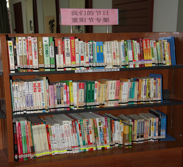 为传承古老的中华民族优秀文化,弘扬尊老敬老的传统美德,丰富老年朋友们的节日文化生活,南宁市图书馆在文学借阅室推出“我们的节日——重阳节”图书专架,精心挑选了《给老爸老妈的健康枕边书》、《百岁老人长寿秘诀》、《老年人数码摄影手册》等一批关爱老年人健康、养生、文娱休闲等方面的图书,让老年朋友掌握一些必备的养生、保健知识,以乐观轻松的心态享受生活、安度晚年,也希望更多的子女通过书籍理解、关心老人的身心健康。欢迎广大市民读者前来借阅。