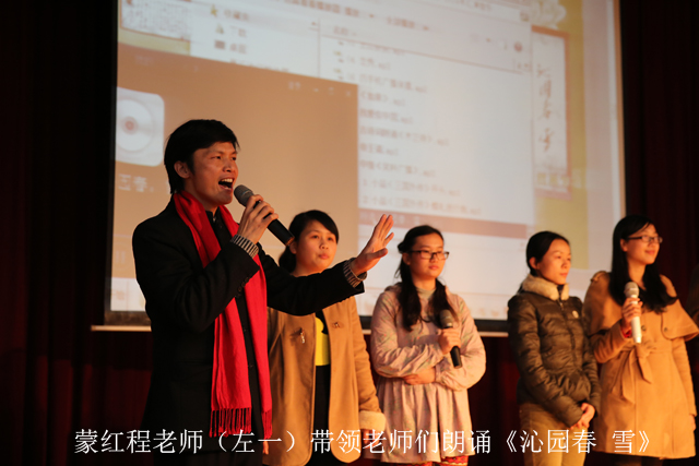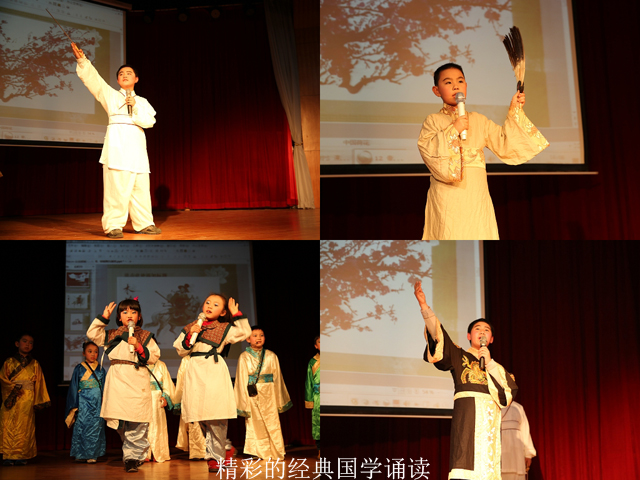 2014年少儿语言艺术汇演由南宁市图书馆与南宁市鸿程文化艺术中心联合举办。演出由一首时下最红的歌曲《爸爸去哪儿》开场,引爆了现场热烈的掌声。相声、小品、讲故事、朗诵、主持……丰富的表演几乎囊括了语言艺术的各种门类。其中,身着古装进行展示并朗诵《木兰辞》、《满江红》、《赤壁怀古》等经典古诗词的小演员们,不仅显示出了语言艺术的天赋,也体现出对国学经典的热爱与传承。而相声《吹牛》、《假如我是爸爸》、广播节目主持《笑料广播》等节目则引得台下观众捧腹大笑,观众纷纷称赞孩子们小小年纪便模仿得如此惟妙惟肖。压轴节目是由蒙红程老师带领鸿程文化艺术中心的老师们朗诵的《沁园春?雪》,其声情并茂、气势恢宏的演绎博得了经久不息的掌声。观众脑海里不禁浮现出毛泽东主席面对祖国壮丽山河直抒胸臆,纵论历史英雄人物,抒发伟大抱负的画面。该节目可谓是为刚刚过去的一代伟人毛泽东诞辰120周年献上了一份厚礼。