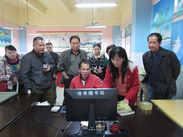 随后,南宁市图书馆、横县图书馆一行8人又奔赴到横县百合镇文化站,在该站图书馆进行实地考察。为了丰富横县百合镇文化站图书室藏书,满足当地读者的阅读需求,2010年5月5日南宁市文化新闻出版局、南宁市图书馆、南宁市少年儿童图书馆与横县端书图书馆在该站建立了图书流通点。这次的实地考察是为了进一步了解该图书流通点建立以后读者的阅读情况以及进一步探讨在百合乡建立分馆的可行性。