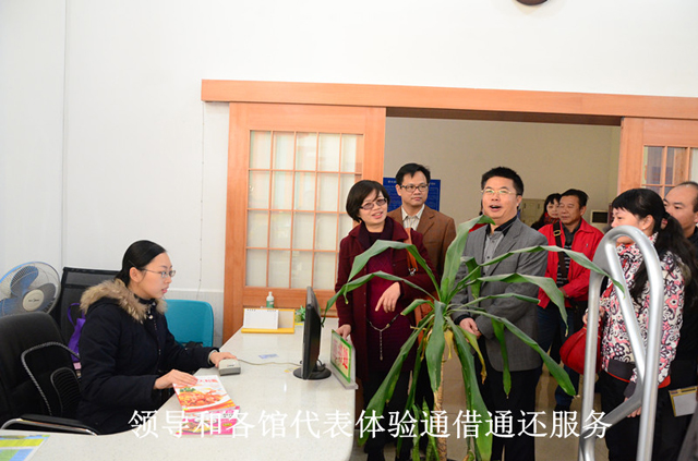仪式上,南宁市文化新闻出版局蒙文虎局长发表讲话。蒙局长指出,我市两家市级公共图书馆与六城区图书馆实现通借通还,是继全市公共图书馆实现免费开放服务以来的又一重大成果,标志着我市“城乡一体化联合图书馆”建设项目迈出实质性步伐,是我市全体图书馆工作者向市民们献上的马年新春大礼。希望全体图书馆工作者锐意进取,开拓创新,为推进书香南宁建设作出新贡献。随后,在南宁市各公共图书馆同仁和广大读者的见证下,蒙局长宣布“南宁市城乡一体化联合图书馆”市、区二级服务网络正式启用。