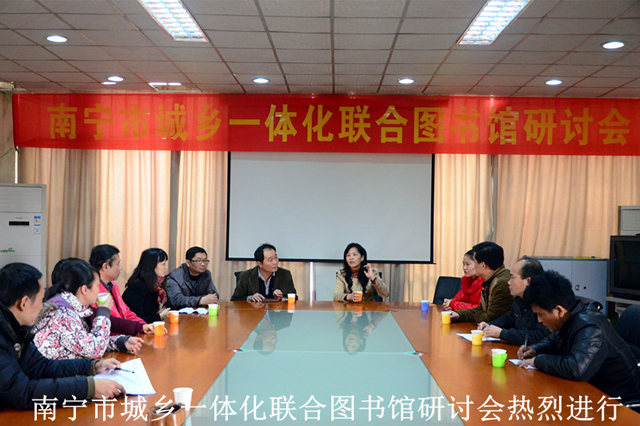 当天,“南宁市城乡一体化联合图书馆工作研讨会”也在市少儿图书馆三楼会议室举行,会议由南宁市图书馆学会理事长、市图书馆馆长贺南潮主持,各市级图书馆、城区图书馆馆长及相关工作人员针对联合图书馆“通借通还”试运行阶段出现的问题进行汇总并展开深入探讨,共同研究解决方案。会上,贺南潮理事长提出“南宁市城乡一体化联合图书馆”建设项目下一步工作计划,在完成市、区两级公共图书馆服务联网后,两所市级图书馆将把工作重心放在县级图书馆的联网工作上,并要求城区图书馆就如何将社区图书馆(室)纳入联合图书馆管理之中多做研究,同时为了进一步完善城市图书馆服务网络,应大力呼吁各级政府支持“街区24时小时自助图书馆”的建设,共同推进全民阅读,打造书香南宁。