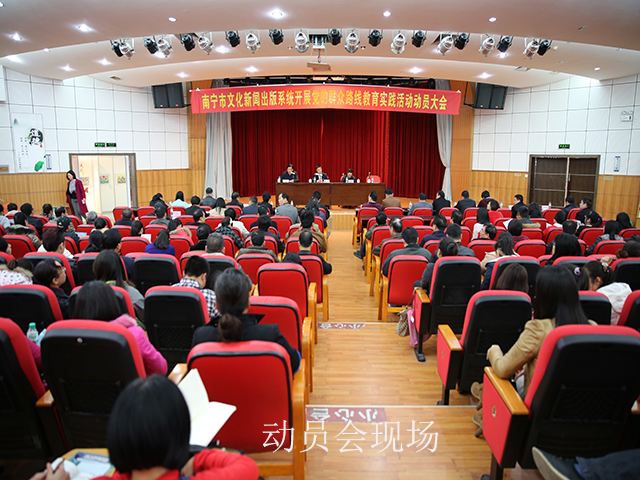 2月26日下午,“南宁市文化新闻出版局系统开展党的群众路线教育实践活动动员大会”在我馆多功能厅举行。南宁市文化新闻出版局领导班子和二层单位的领导班子,机关正处级老同志,系统全体党员、入党积极分子共200多人参加了会议,市委第九督导组的赵炳生组长、卜国建副组长、李婕、黄红澜同志到会指导。会议由南宁市文化新闻出版局党组副书记、副局长、版权局局长于维钢主持。