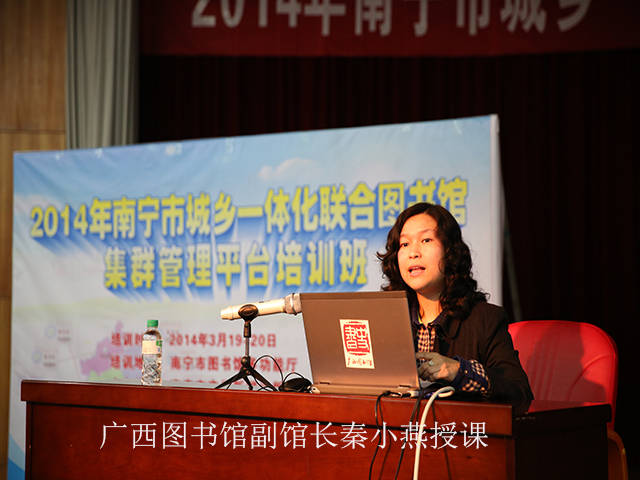 其间,市图书馆通过设立专用邮箱、工作QQ群、工作热线等意见渠道,对各县、城区图书馆开展调研,全面征询和了解基层图书馆的困难和对图书馆工作的意见和建议。经调查发现,目前加入“城乡一体化联合图书馆”体系的成员馆普遍反映对新系统集群管理平台各子系统的的参数设制要求和操作技能还不够熟悉。为及时解决这一难点问题,3月19至20日,南宁市图书馆学会组织举办“2014年南宁市城乡一体化联合图书馆集群管理平台培训班”,来自我市市、县(区)两级14所公共图书馆和部分中小学图书馆的馆长和业务馆员共150人参加了培训。此次培训邀请广西壮族自治区图书馆副馆长秦小燕,市图书馆流通部主任蒋桂香、采编部主任陆伟环、期刊部主任方静和技术部业务骨干陈啸秋老师分别为学员们讲授“现代图书馆的服务理念和技术创新”和“城乡一体化联合图书馆集群管理平台”的各个参数设制要求,以及Interlib集群管理系统下的采编、流通、期刊子系统的操作等内容,帮助大家提升对集群管理平台的运用、管理、维护和操作水平。经过2天的封闭式集中学习和答疑讨论,大家对集群管理平台的疑难重点都有了进一步的掌握。