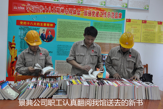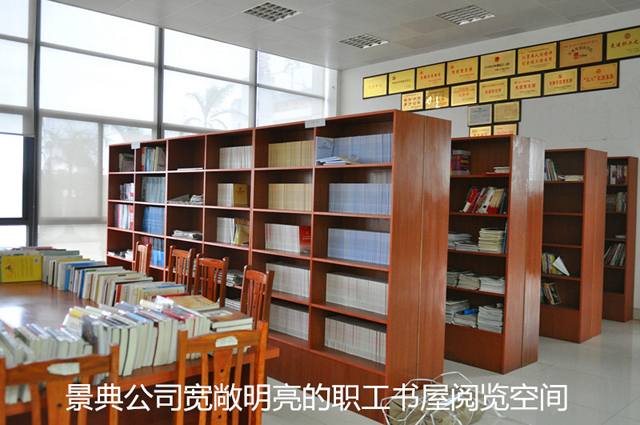 景典公司的生产基地办公大楼内原设有一个面积逾200平方米的职工书屋,配有24组木质书架、阅览桌椅、12台电脑和空调等设施,阅览空间宽敞明亮。原有书籍偏重于生产建设、技术指导、安全生产等方面内容。我馆经过前期调研和考察,认为景典公司建设图书流通站的硬件条件优良,管理规范,且领导班子非常关注职工的精神文化需求,高度重视企业文化的建设。为此,我馆精心挑选了励志、文学、科技、教育、生活、人文社科、经济管理等类别的书籍,大大充实了职工书屋的新书源及藏书量,为景典公司营造良好的学习氛围,满足企业员工的精神文化需求,不断更新员工的知识结构,助力景典公司人才成长平台的搭建。