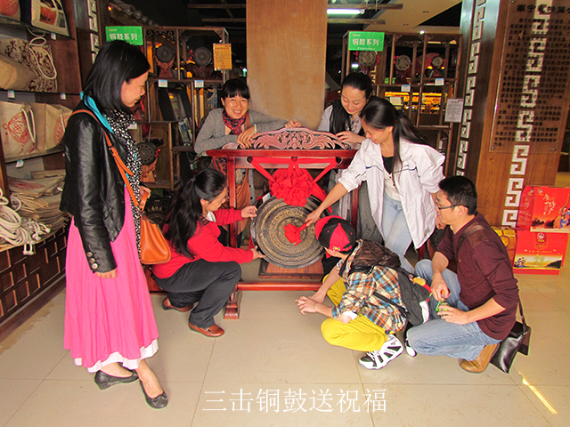 傍晚时分,沙龙成员们以三击壮族铜鼓的方式为“放歌三月三”读书主题活动划上了一个祝福的感叹号。