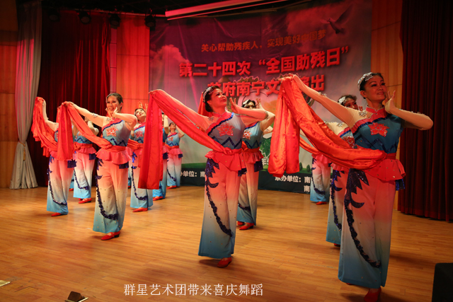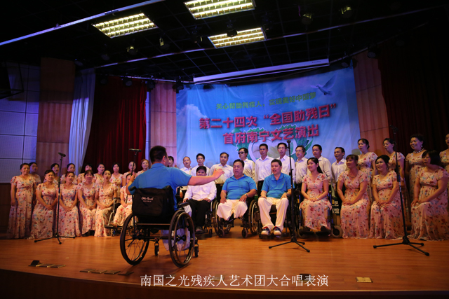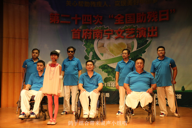 文艺演出在南国之光残疾人艺术团的大合唱《祖国不会忘记》中拉开帷幕,整齐的着装,开心灿烂的笑容,整齐悦耳的歌声感染了现场的观众,演唱结束之后,大家为演员们精彩的表演报以热烈的掌声。随后,美伶组合、彩虹组合、鸽子组合等群众文化团体的残疾人艺术家们轮番上台,《感恩》、《梦田》、《故乡的亲人》等歌曲的演绎表达了残疾人艺术家们对祖国的热爱、对生活的感恩、对梦想的执着。代表南宁在第八届全国残疾人文艺汇演上拿到好成绩的“鸽子组合”,则用混声小组唱的方式演绎了《飞吧,鸽子》,感染了现场的每一位观众。南国之光残疾人艺术团的一位团员说,我们为了在今天拿出最好的水平,大家都是抽出空闲的时间,不断的编排和训练,就是希望大家能够领略到我们残疾人乐观的生活态度和迷人的舞台风采。