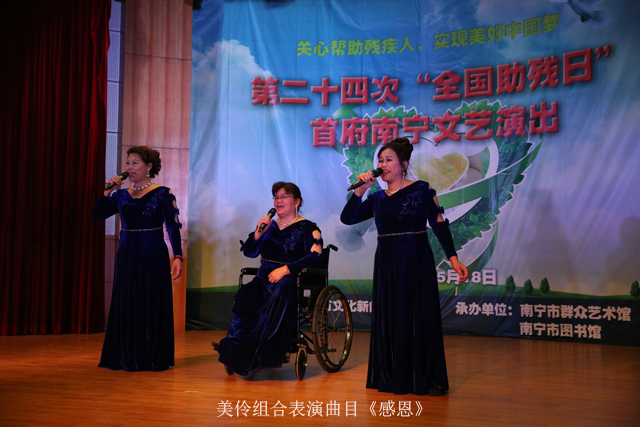 5月18日是第二十四次“全国助残日”。当天下午,南宁市图书馆多功能厅里传出了阵阵悠扬歌声和悦耳笑声。由南宁市文化新闻出版局主办,南宁市图书馆、南宁市群众艺术馆承办的第二十四次“全国助残日”首府南宁文艺演出在这里精彩上演。残疾人朋友们唱起快乐的歌声、跳起欢快的舞蹈,度过了一个难忘的节日。