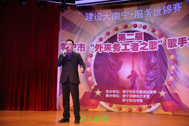 为进一步深入贯彻党的十八大精神,丰富进城务工人员的精神文化生活,切实保障外来务工人员的基本文化权益,促进首府群众文化的大发展大繁荣,同时为即将到来的第45届世界体操锦标赛营造和谐的文化氛围,5月24日,“建设大南宁?服务世锦赛”第二届南宁市“外来务工者之歌”歌手大赛在南宁市图书馆激情开赛。南宁市文化新闻出版局党组副书记、常务副局长于维钢等领导观看了比赛。