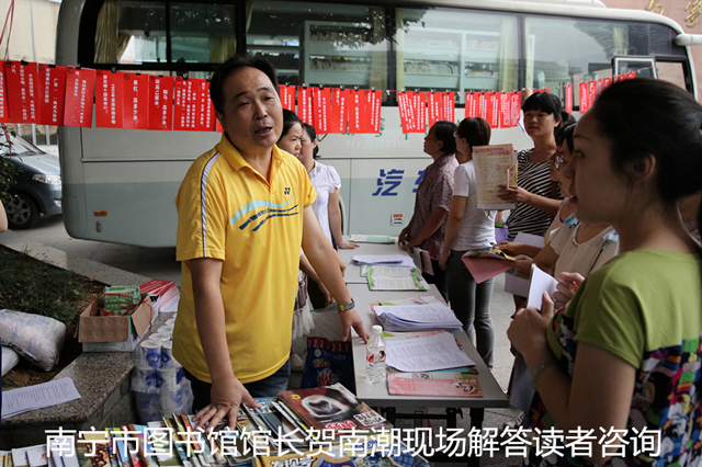 市图书馆与六城区图书馆齐聚一堂,携手为市民提供公共文化服务,是南宁市市、区两级公共图书馆共享资源,共同促进、共同提高、共同发展的一个缩影。通过人声鼎沸、气氛热烈的活动现场,展示了我市各级公共图书馆干部群众凝心聚力、开拓进取,为群众多办实事、多办好事的良好精神状态。随着我市第二批群众路线教育实践活动深入推进,我市各级公共图书馆将进一步强化图书馆服务宣传,紧扣服务群众主题,结合宣传第四十五届世界体操锦标赛和“美丽广西•清洁乡村”行动,持续推出“当好东道主,服务世锦赛”、“培育和践行社会主义价值观”等系列活动,大力宣传群众路线教育实践活动,推动各城区公共文化的均衡发展,为提升南宁市城市形象、城市品位和文化软实力尽一份力,为南宁市公益性文化事业的繁荣发展推波助澜。