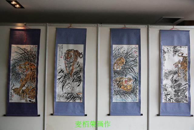 该画展由南宁市文化新闻出版局和南宁市图书馆联合举办,展出国画作品50余幅,每幅作品展示的都是不同形态的老虎形象,栩栩如生。画作的主人即小画家麦栢荣说:只要心中有虎,就会画出神态各异的老虎来。尤其是在现场展出的百虎长卷更是用笔墨将老虎在一天中的形态演绎得淋漓尽致。2009年,麦栢荣6岁时就在南宁市图书馆举办了第一次个人画展,2010年获广西第三届“八桂画童”金奖,2011年获第十六届全国中小学生书画比赛绘画一等奖,2012年9岁时又在南宁市图书馆举办了他的第二次个人画展,2013年参加上海刘海粟美术馆“首届沪桂青少年美术作品公益展”。如今,11岁的麦栢荣已是第三次举办个人画展,而且每次画展的主题都不同。这次“虎虎生威”迎“六•一”国画展的展出目的不仅仅是为了迎接国际儿童节,同时也通过画展倡导人们一起来保护野生动物,树立绿色环保理念。