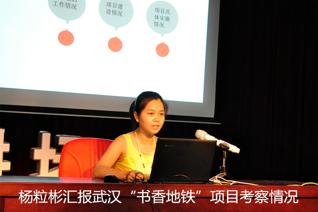 会上,办公室杨粒彬老师首先代表5月初我馆赴武汉考察组介绍了外出考察的情况以及所考察的武汉“书香地铁”项目在建设运行过程中的先进经验,提出了我市推进“书香地铁•香飘绿城”项目建设工作的思考。她指出,武汉“书香地铁”项目已成为武汉轨道交通的特色文化,考察组能够切实感受到“地铁阅读”这一新颖、便捷、人性化的读书体验,感受到“文化武汉、书香地铁”的建设深入人心。但是,该项目是由武汉地铁公司自行运营,自行发卡、办理读者证。虽有利于书库的统一和及时调配,但也存在文献资源类型不够丰富;与武汉市公共图书馆发放的读者证相互之间不通用、不兼容的弊端,造成书籍只能在地铁线内流通,站外还书不够便利。因此,我市若实施“书香地铁”项目,建议还是将其纳入图书馆工作中实施统一管理,与我市“城乡一体化联合图书馆”服务平台对接,实现全城通借通还,更方便读者借阅,更能真正带动市民的读书热情。同时,从城市文化的发展来看,也具有深远的意义和长远的价值。