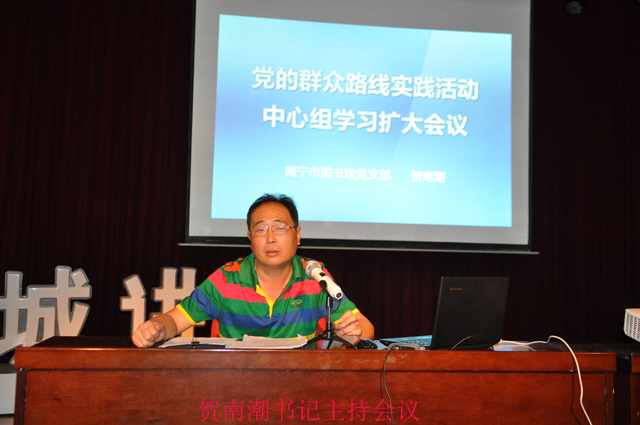 根据中共南宁市委党的群众路线教育实践活动总体安排,5月30日上午,南宁图书馆在报告厅召开中心组扩大学习会。会议由馆党支部书记、馆长贺南潮同志主持。