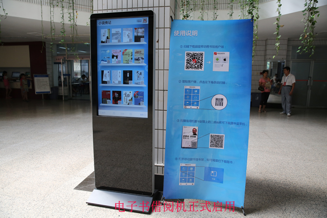 7月7日,在南宁市图书馆读者大厅,不少市民围绕在电子书借阅机前,争相用手机扫描二维码免费下载电子图书。当天,南宁市图书馆电子书借阅机正式启用,市民读者可以通过手机免费下载近3千册不同种类的电子读物,种类涵盖了经典名著、生活保健、亲子育儿、政史军事、社会法律等20种,南宁市图书馆以后还将每月定期更新一百册电子新书。电子书借阅机的启用,不仅给市民们的暑期阅读充电提供了更方便快捷的方式,同时也让大家享受到最时尚新潮的阅读体验。