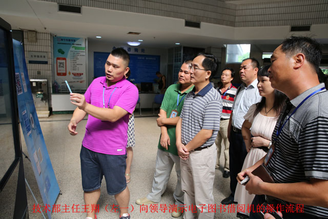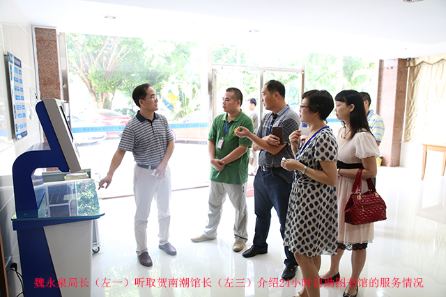 在馆书记、馆长贺南潮、副馆长陆庆的陪同下,魏局长一行实地考察了我馆市民阅读中心、24小时自助图书馆、艺术展廊、多功能厅、地方文献阅览室、社会科学阅览室、残疾人阅览室、公共电子阅览室等开放窗口,实地了解读者活动部、采编部、技术部等部门的运转流程及员工工作情况,对我馆在人文服务、自助服务、活动品牌等方面做出的成绩表示充分肯定,并对我馆提出的把24小时自助服务模式在全市推广的规划表示高度认可,希望市图尽快落实方案,把此项功在当代、利在千秋的惠民工作实施到位,让市民享受更为方便、快捷的公共文化资源,推动建设“文化南宁,书香绿城”。