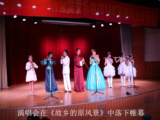 本次竹韵悠扬——竹里馆爱乐坊2014年暑期师生音乐会由南宁市图书馆与竹里馆•笛箫葫芦丝艺术中心携手推出,师生们用埙、陶笛、箫、排箫、葫芦丝、曲笛、长笛等近10种传统乐器演奏了二十多首曲目。《帕米尔的春天》带领大家感受了高原的美丽风景;《竹楼情歌》把傣族阿哥阿妹的深深爱恋完美表达;古曲《梅花三弄》则仿佛向大家讲述一段久远的故事;《天空之城》又让观众朋友们感受到中国传统乐器与外国优秀音乐相结合的绝妙与惊艳……